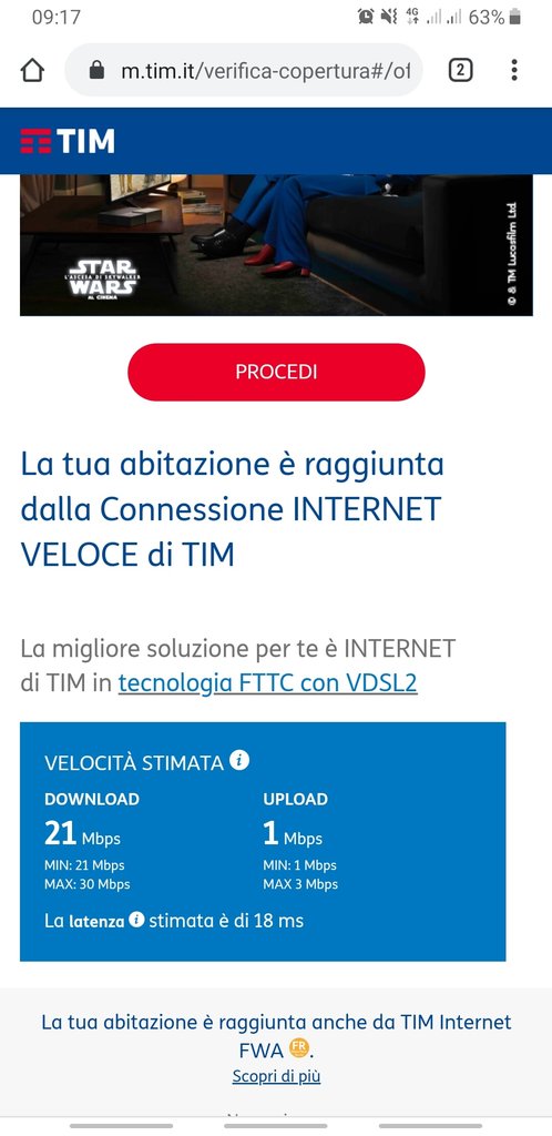 Edit: per verificare la copertura di Tim ho inserito l'indirizzo del vicino, il n.180.