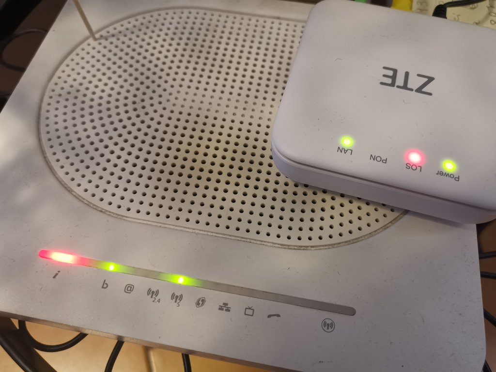 Buongiorno da un paio di giorni il modem e l'ont si presentano come in foto. La tim ha provato da remoto a farmi eseguire i vari reset ma nulla. Il cavo ottico ho provato a sostituirlo con uno nuovo e non è cambiato nulla. Come può essere che si sia tranciata la fibra se dal muro all'ont è tutto ok e non è stato toccato nulla?