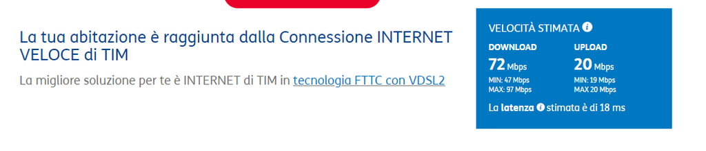 Aggiungo che anche la verifica copertura di TIM mi da disponibile la fttc al tuo indirizzo: