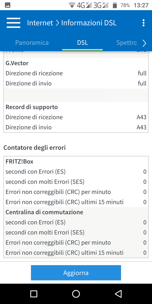 JosephFedele Interessante, anche a te il fritz!box rileva il vectoring, ma credo che sia (come per molti) tenuto disattivato, però per saperlo effettivamente, nel file di assistenza, cerca GVECT, e se i contatori mostrano un numero diverso da 0,tutti, hai il vectoring attivo, tra l'altro abbiamo lo stesso DSLAM, quindi non hai problemi di compatibilità.