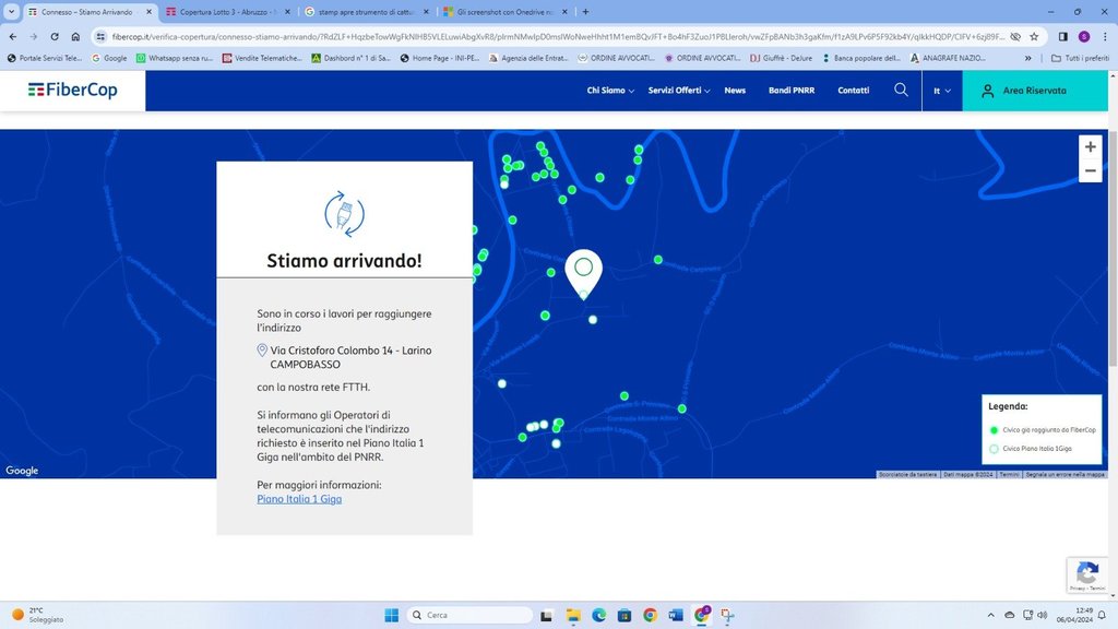Ho la verifica copertura di Fibercop che mi dice "stiamo arrivando"