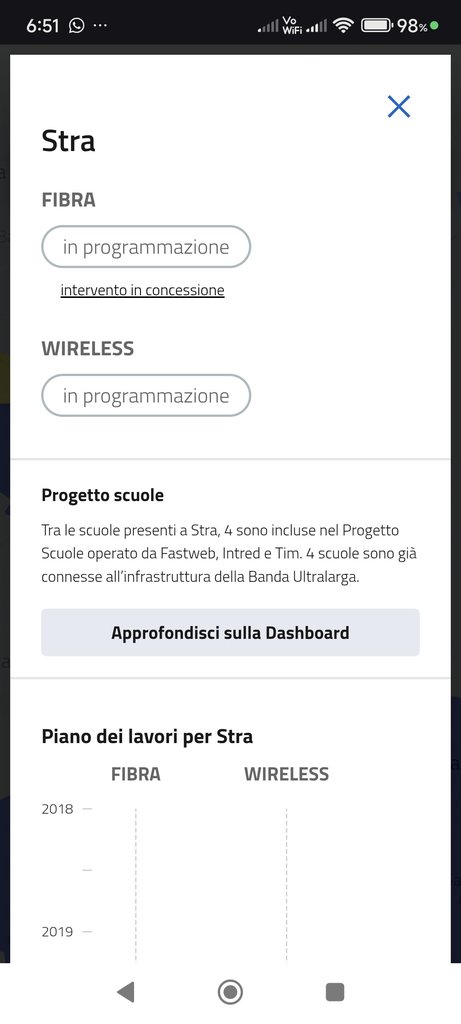 "l'ordine risulta ancora in attesa VLAN e noi non abbiamo tempistiche da fornire, sono sconosciute e imprevedibili. Purtroppo non dipende da noi, ma è Open Fiber che deve rilasciare questo codice di instradamento per il collegamento alla rete nazionale"