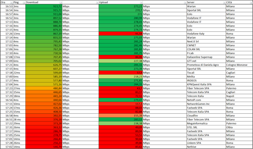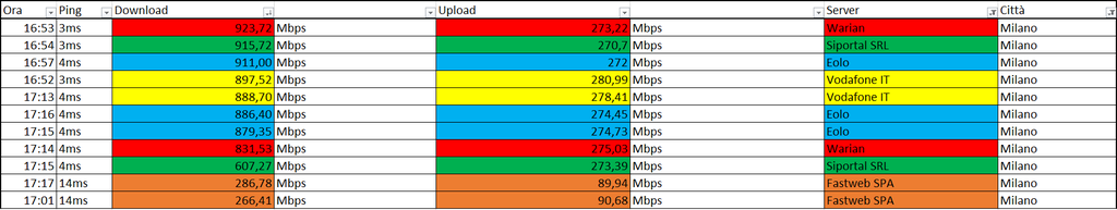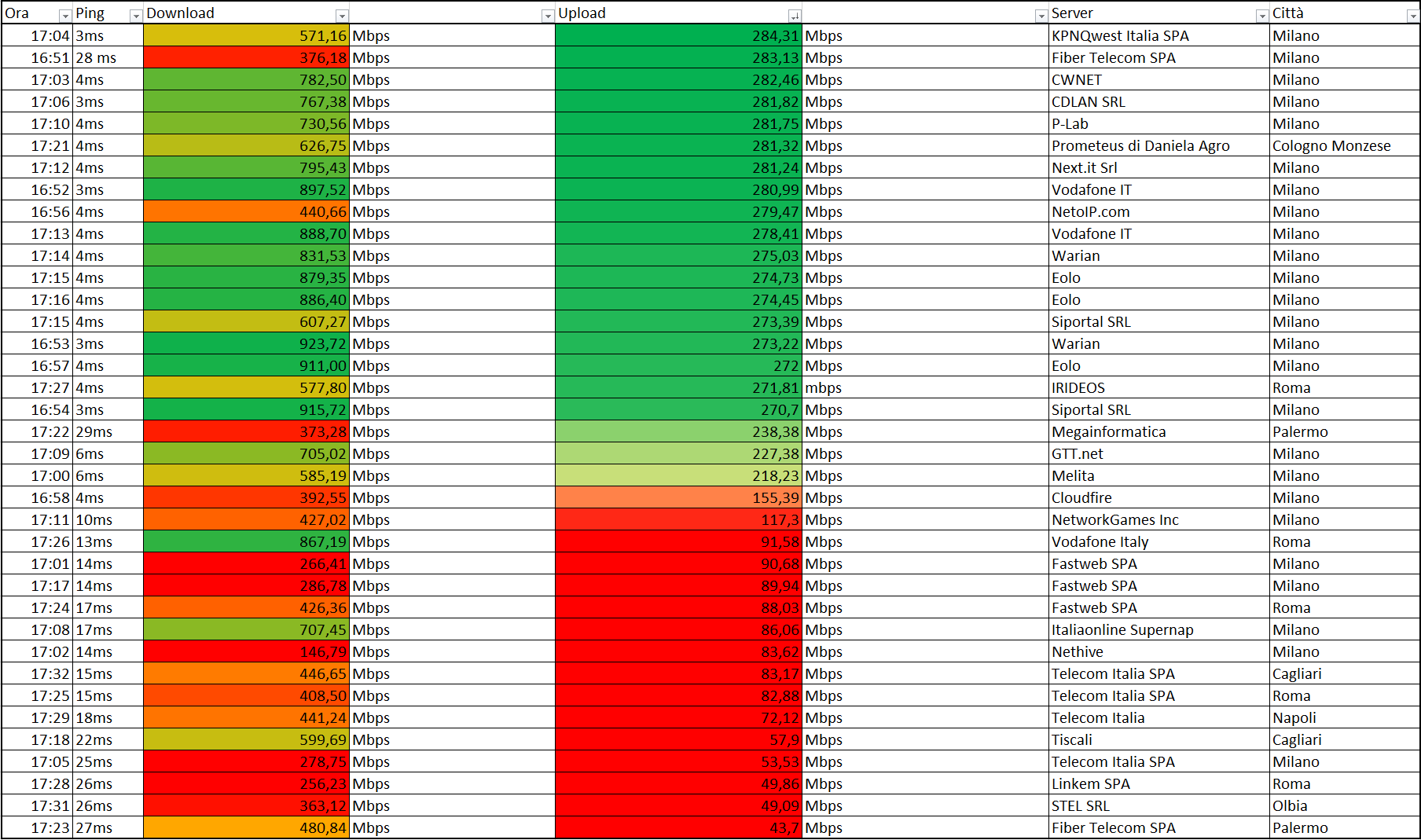 Mi è capitato di leggere qualcuno sul forum che chiedeva quale server di speedtest.net usare, e avendo un po' di tempo oggi ho voluto testarne qualcuno: vi linko sotto i risultati riscontrati per curiosità.