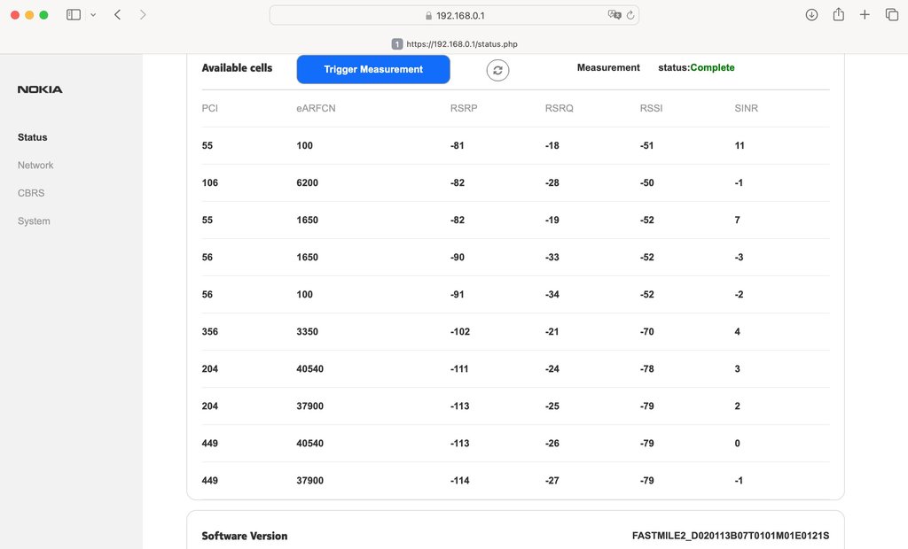Tiziana, la tua FM2 ora sta puntando la BTS 304361 Loc.Furci, ora bisogna puntare fisicamente la FM2 verso la BTS che vorresti agganciare la 304374, poi nella pagina di ingresso che hai postato hai Celle disponibili con il pulsante blù [Misurazioni del trigger] clikka sul pulsante, servono circa 5 o più minuti. Alla fine ricaricando la pagina o premendo sul pulsante sulla dx di quello blù, con le due freccette ti uscirà, sotto il pulsante blù, un elenco di celle che potrai utilizzare con PCI e eARFCN. La schermata è tipo questa: