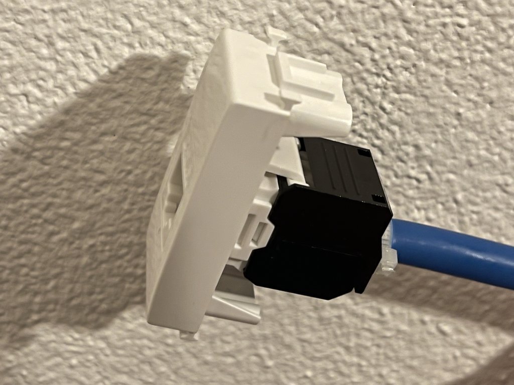 e sono riuscito a montarli in una presa ad incasso 2 moduli senza martoriare eccessivamente il cavo e questo è il risultato