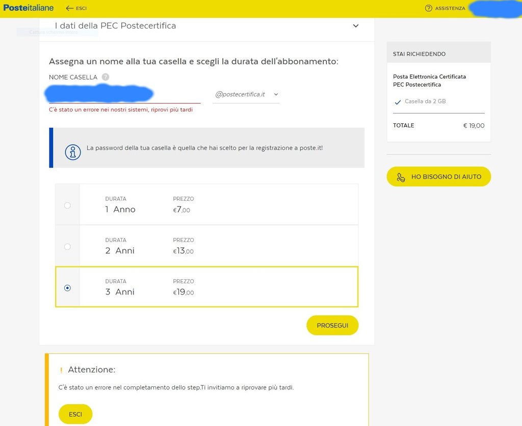Andare su pec e fare Acquista. Quando lo propone fare il login con lo SPID e non con il profilo poste (a meno che non abbiate il profilo poste di tipo "FORTE" ovvero un profilo autorizzato a compiere movimenti finanziari con i prodotti di Poste).
