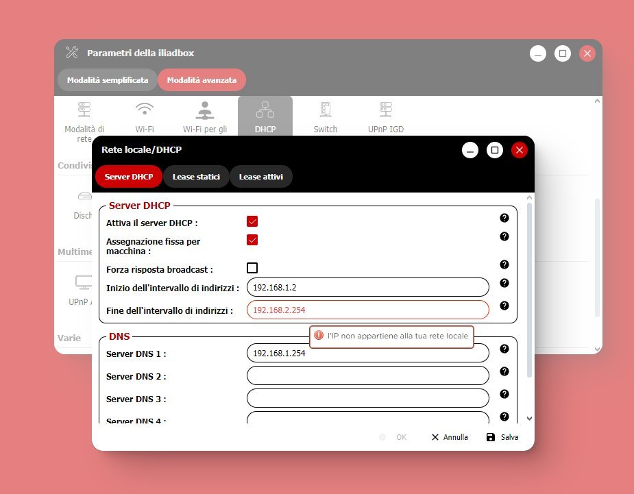 Cercavo anch'io di cambiare la subnet per aumentare il range di ip ma non ho trovato nessuna impostazione se non il campo, modificabile, di indirizzi ip. Lì mi è sorto il dubbio che magari, modificando il range di indirizzi, in automatico venisse modificata la subnet, e invece no.
