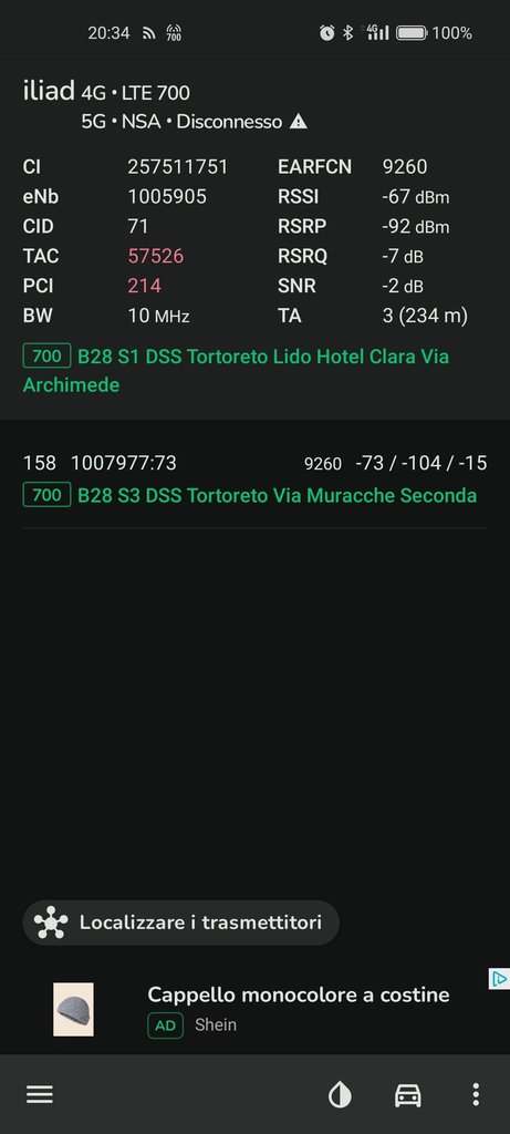 Anche con lo smartphone niente 5G, le bts sono in 5G DSS con banda N28, netmonster mi segnava appunto 5G NSA - Disconnesso