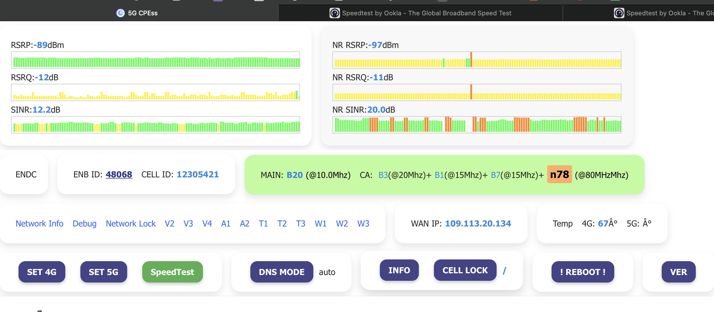 ti dico solo rapidamente che rssi è una sintesi di tutte queste voci e quindi in generale indica la bontà della rete, il valore è negativo e più si avvicina allo zero più è buona la situazione. rsrp indica la potenza del segnale, anch'esso è negativo e più tende a zero e meglio è, tra 70 e 80 è ottimo. rsrq indica la qualità del segnale e vale la stessa cosa appena detta, più tende a zero e meglio è, un valore sotto 10 è ottimo, sopra comincia a peggiorare. il sinr indica la presenza di rumore/interferenze ed è il quoziente di rsrp per rsrq, più è positivo e meglio è, sopra 15 ottimo, sotto comincia a peggiorare.