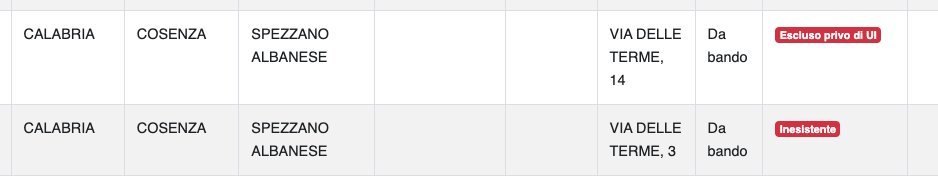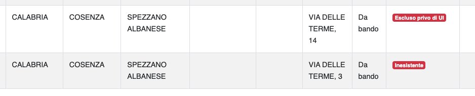 Enishi enricoz Non capisco nemmeno io, anche perchè se metto dei civici che nel tuo elenco sono taggati inesistenti in realtà nel loro sito sono previsti per i lavori. In questo caso c'è qualcosa che si può fare visto che i lavori ancora non sono stati iniziati? Sto aspettando di vedere se info@infratel mi rispondono intanto. Comunque grazie di tutto intanto che stai spendendo tempo per aiutarmi!