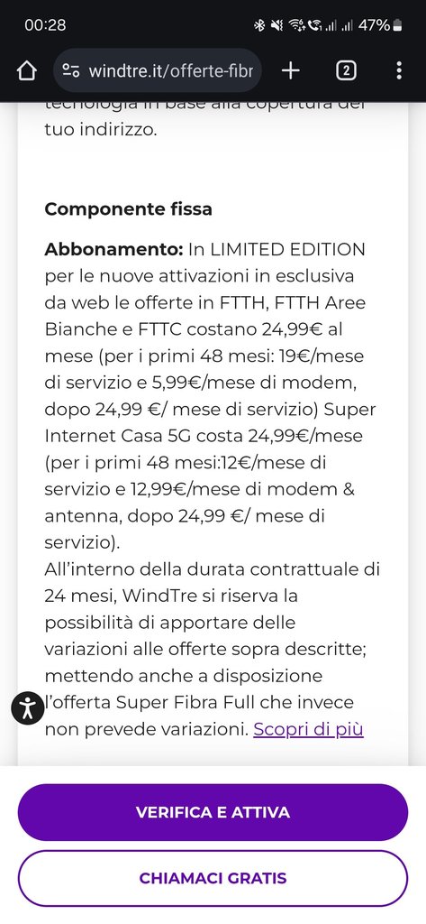 - 19 servizio +5,99 modem per primi 48 mesi = tot 24,99