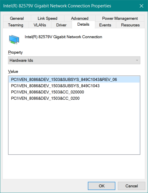 Quelli sono i dati che Windows usa per scegliere i driver per un dispositivo. Se non ne trova uno corrispondente va poi in fallback usando i dati degli ID compatibili. Se però la scheda è effettivamente solo a 100Mb non ci sono soluzioni se non installarne un'altra, esterna o interna. Strano però, l'Intel AC 3165 è del 2014, allora le schede 100Mb erano già un po' obsolete. Per usare una adattore USB assicurati di avere almeno un porta USB 3. USB 2 può arrivare ad un massimo di 480Mb teorici, quindi in realtà qualcosa di meno.