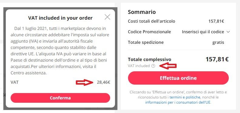 Sembrerebbe che le imposte siano proprio incluse, come da legge per gli articoli sotto ai 150 euro IVA esclusa. Prova ne è che se provo ad aquistare qualcosa sui 250 euro la scritta Vat included non compare.
