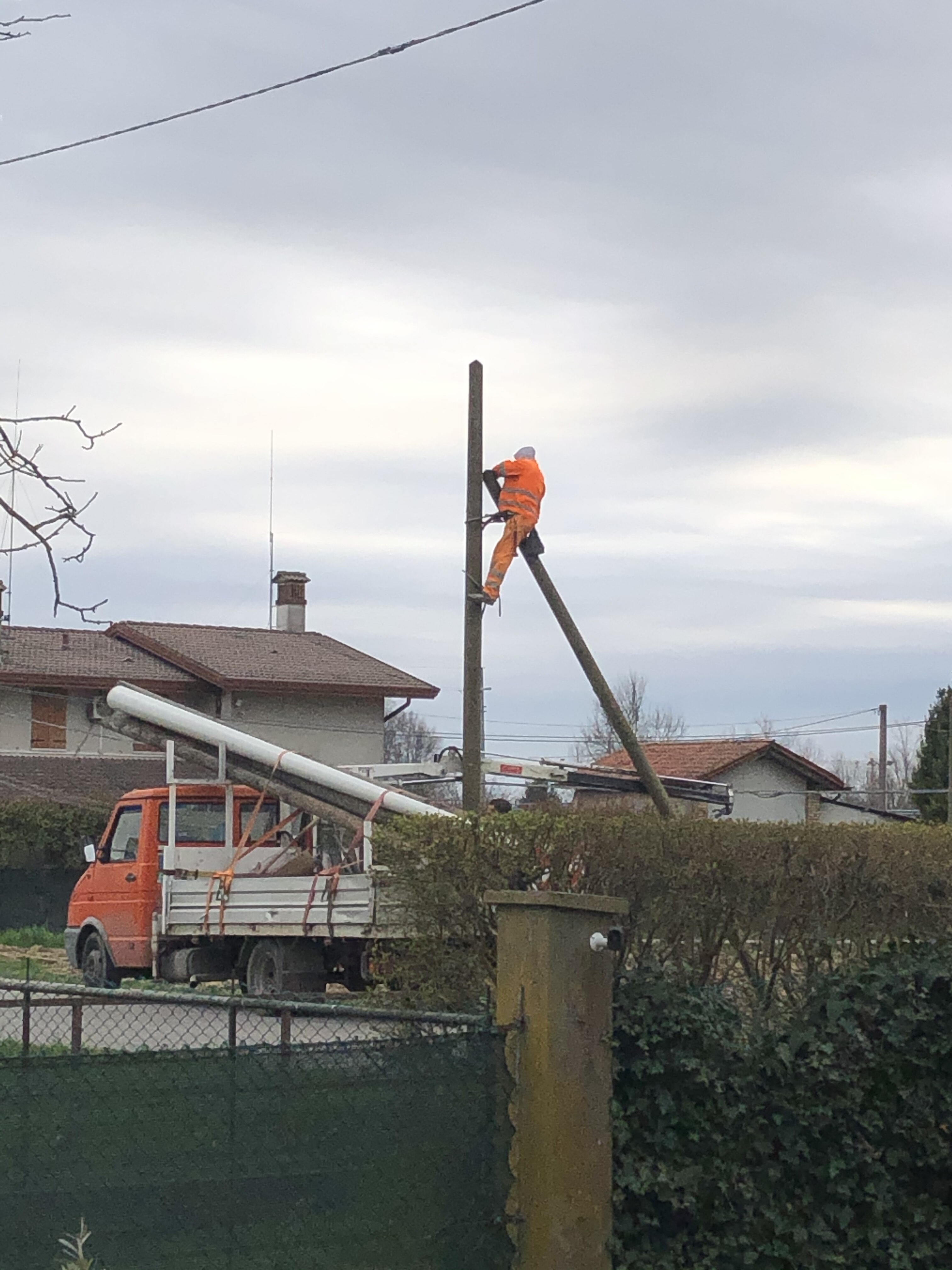 ma ero molto più preoccupato dai lavori che stavano eseguendo 2 tecnici (di impresa sconosciuta, parlavano uno strano idioma talebano) sulla palificata dove c'è la mia carissima fibra: