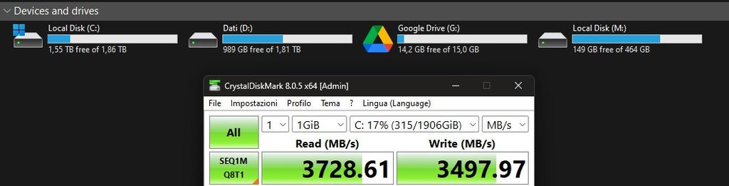 Passare da 560MB/s a 3.7GB/s è tanta roba 🙂 peccato che ho la scheda madre che ai 2 socket M2 supporta solo pcie3.0 e non 4, ma già così è un grosso salto in avanti...
