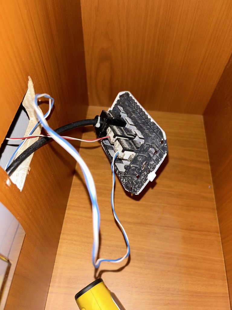 Scatola di derivazione piano inferiore ingresso linea Telecom che va diretta al Modem al piano superiore (cavo Blu/bianco)