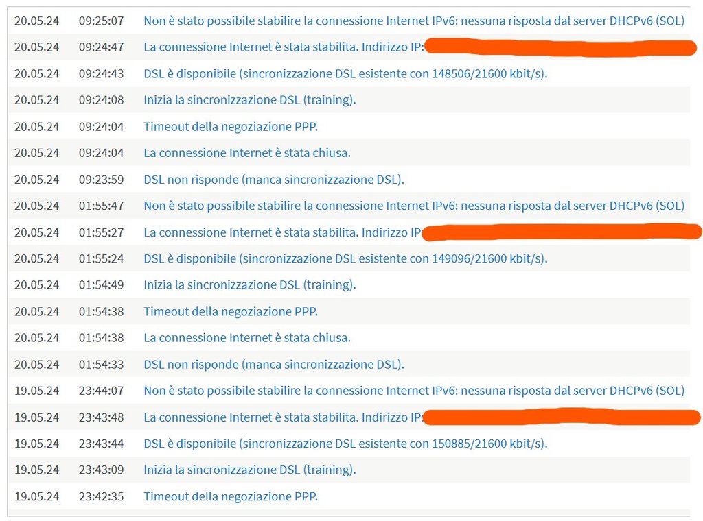 Inoltre una singola volta nel log ho avuto un errore riguardo ad un cablaggio non corretto, possibile derivazione (purtroppo ho perso il log) e la linea era passata da 150Mb a 55Mb finchè non ho riavviato il modem.