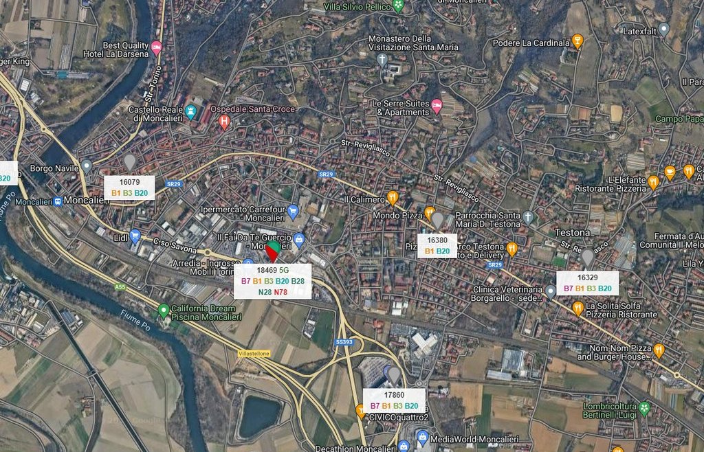 Se mi confermi che stiamo parlando di questa bts, noto che può coprire una buona parte della popolazione di questa città, perché le altre mi sembrano celle piccole, che coprono poca area, quindi credo che la congestione sia una delle cause possibili della tua connessione che è calata (anche se da un giorno all'altro dubito potrebbe essere esclusivamente per questo motivo)