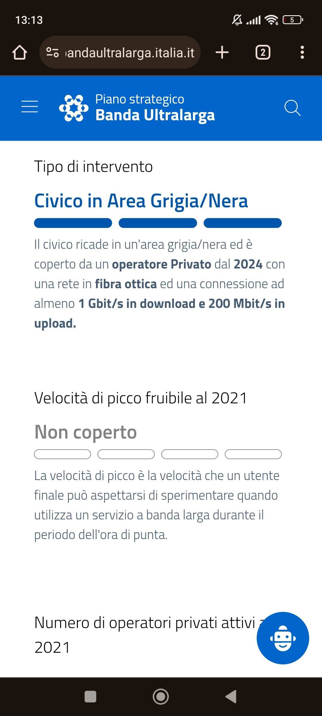 Fra2796 Salve un informazione riguardante la mia situazione con open fiber mettendo il mio indirizzo su banda ultralarga spunto in area grigia/nera però nello stesso tempo risulta che non entro nel mando 1 gi ga italia entro il 2026 quindi zona bianca premetto che ormai la fibra c è un tutto il paese tranne nel mio tratto di strada ho un misera fwa che arriva al massimo a 30 mega qualcuno può spiegarmi vi allego foto così capite meglio