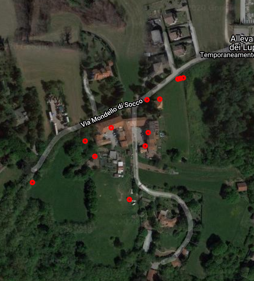 Ho ricostruito parte del percorso che pare essere parte aereo e parte interrato, ma poi le immagini di StreetView diventano del 2011 ed è impossibile procedere. Sembra arrivare da via 1° maggio, quindi potrebbe pure arrivare da via Raimondi, a meno che non gli abbiano veramente fatto attraversare i boschi. Chissà come saranno contenti tutti quelli come te a cui passa la fibra sotto il naso ma non possono essere connessi.