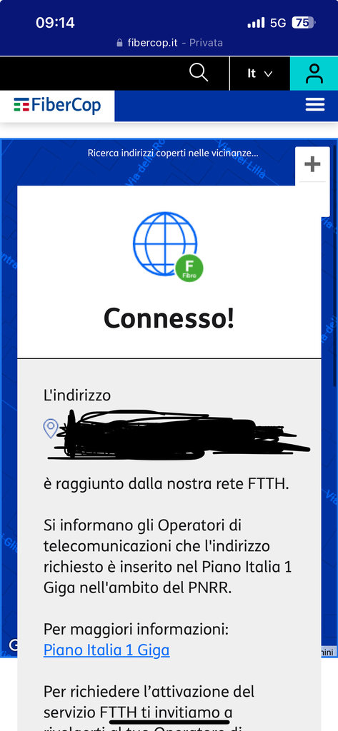 Ma ieri per curiosità ho controllato la copertura della mia via sui vari siti e incredibilmente non risulta più coperta con ftth da nessun operatore, letteralmente nessuno, neppure TIM, solo sul sito di fibercop risulto coperto. Incredulo sono andato a vedere la copertura delle vie attorno alla mia e queste risultano tutte coperte! Da cosa può essere dato tutto ciò secondo voi? Una spiegazione che ho provato a darmi è che la mia via è piena di anziani e su 20 case sono stato l’unico ad attivarla, ma non regge perché le vie attorno alla mia sono identiche, cioè piene di anziani poco interessati alla fibra. Resta però il fatto che io ho pagato 200 euro il muratore per far passare il corrugato senza rovinarmi il giardino, ci ho perso tempo e l’unica soluzione che mi ha dato Tiscali è stato uno sconto di un euro al mese sul mio abbonamento. Secondo voi posso adoperarmi in qualche modo? Sul forum non ho trovato nulla di paragonabile a questa situazione.