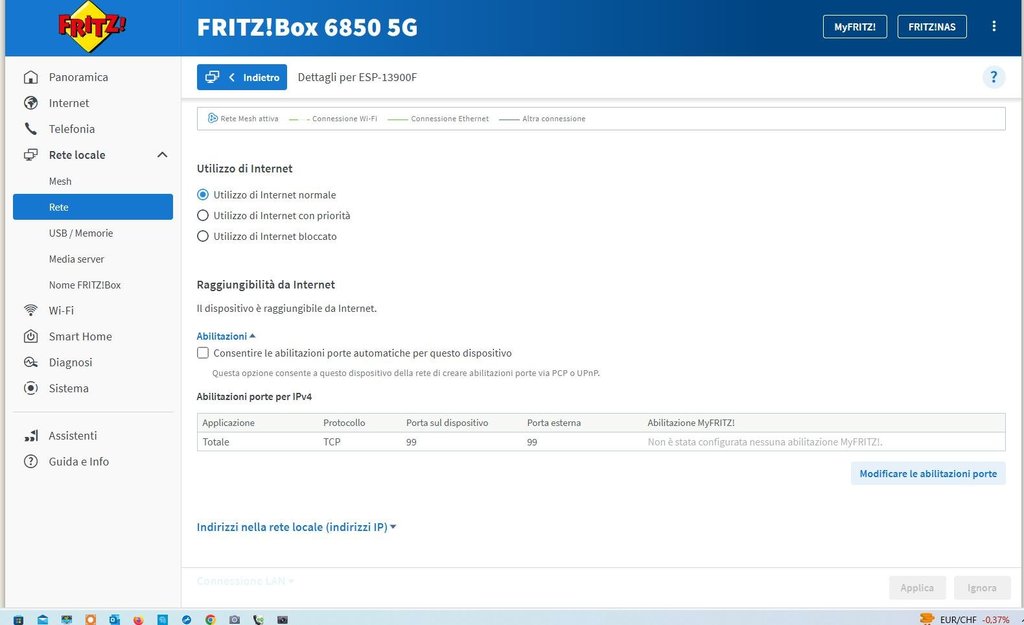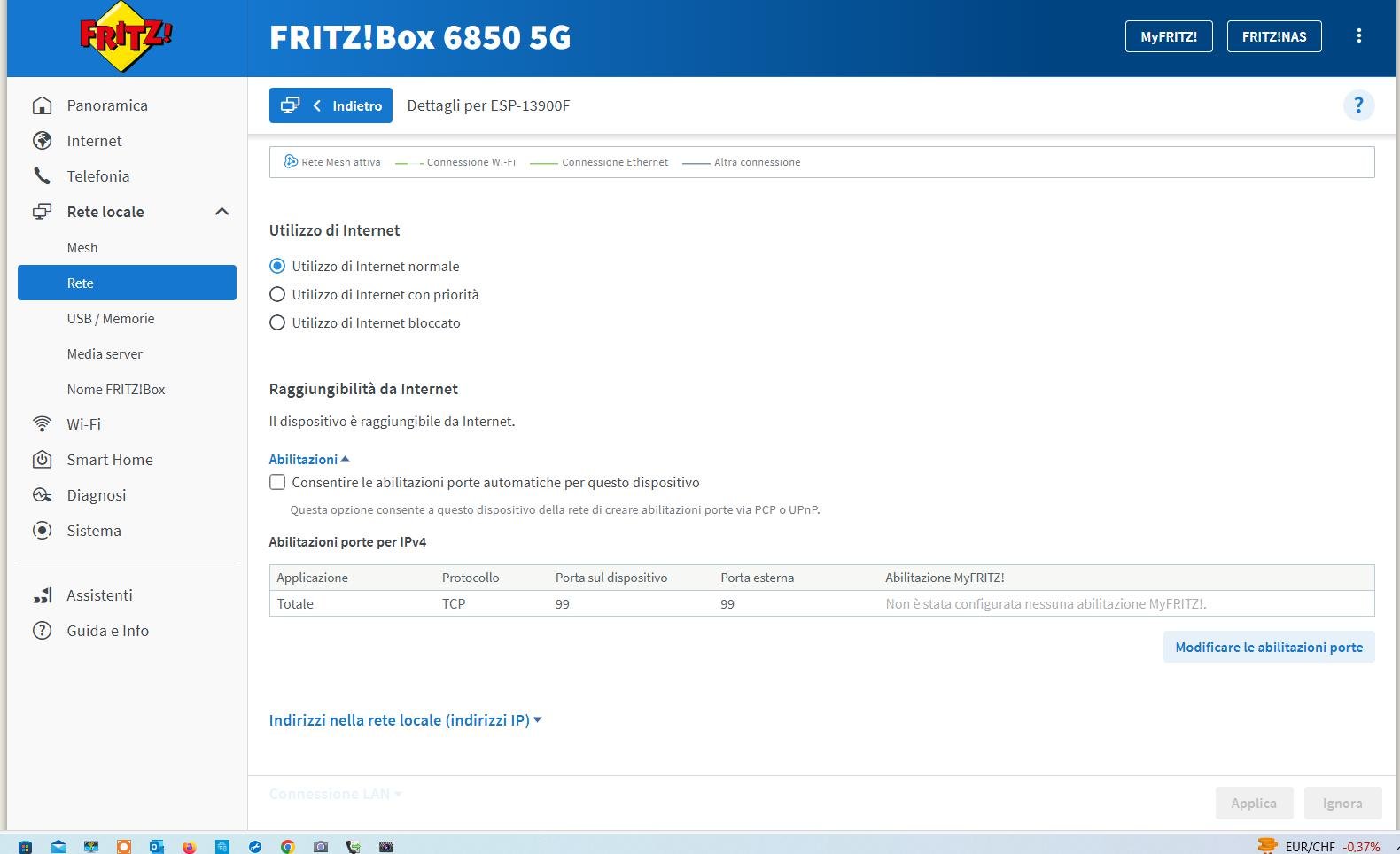 Salvocann walt Dal fritz 7590 con ip statico ho esportato tutto sul 6850 tutte le impostazioni pensando che funzionasse senza intervenire sulle porte perchè già settate. Sicuramente, dovrò resettare nuovamente tutto .