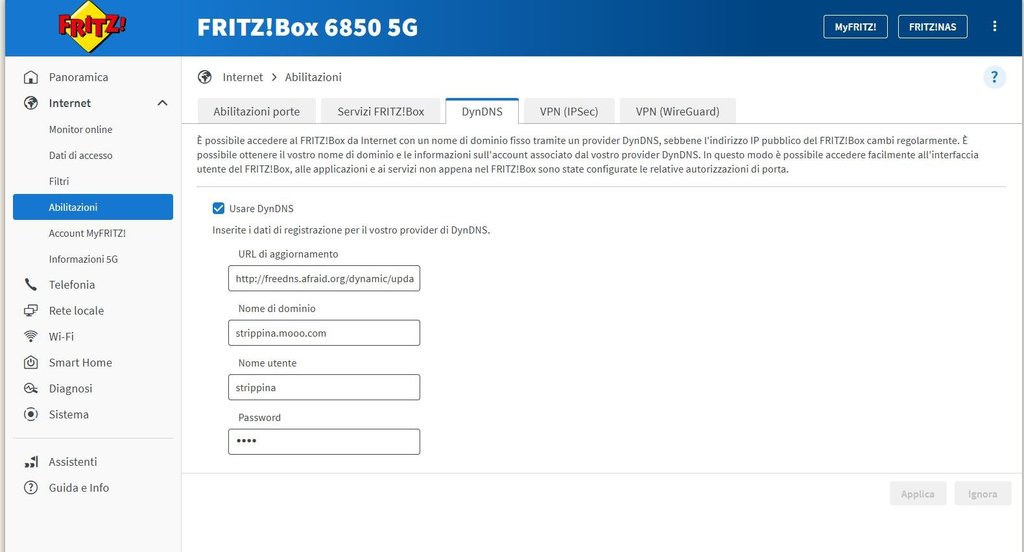 Salvocann DDNS offerto dal FritzBox è quello che voglio usare. nei settaggi ddns devo inserire qualche parametro?
