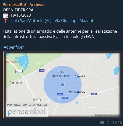 Comunque dovrebbero anche installare una BTS 4G/5G di TIM e Vodafone sempre in quella zona, se fai qualche foto ai lavori magari riusciamo a capire chi è.