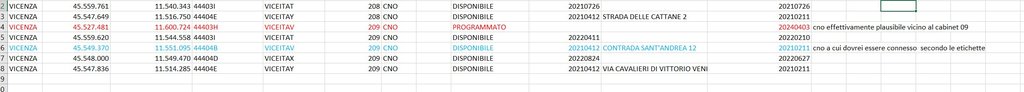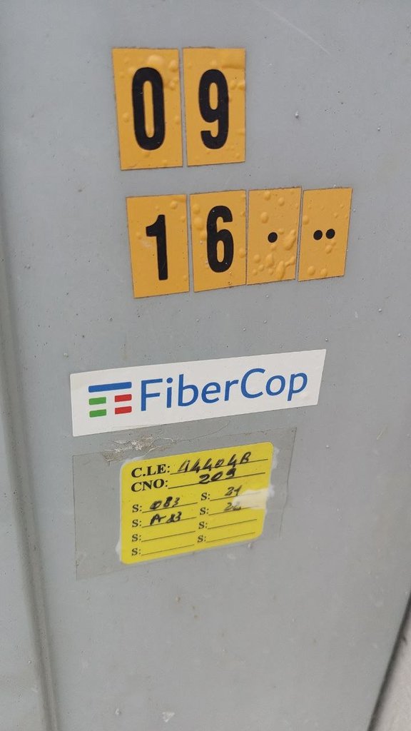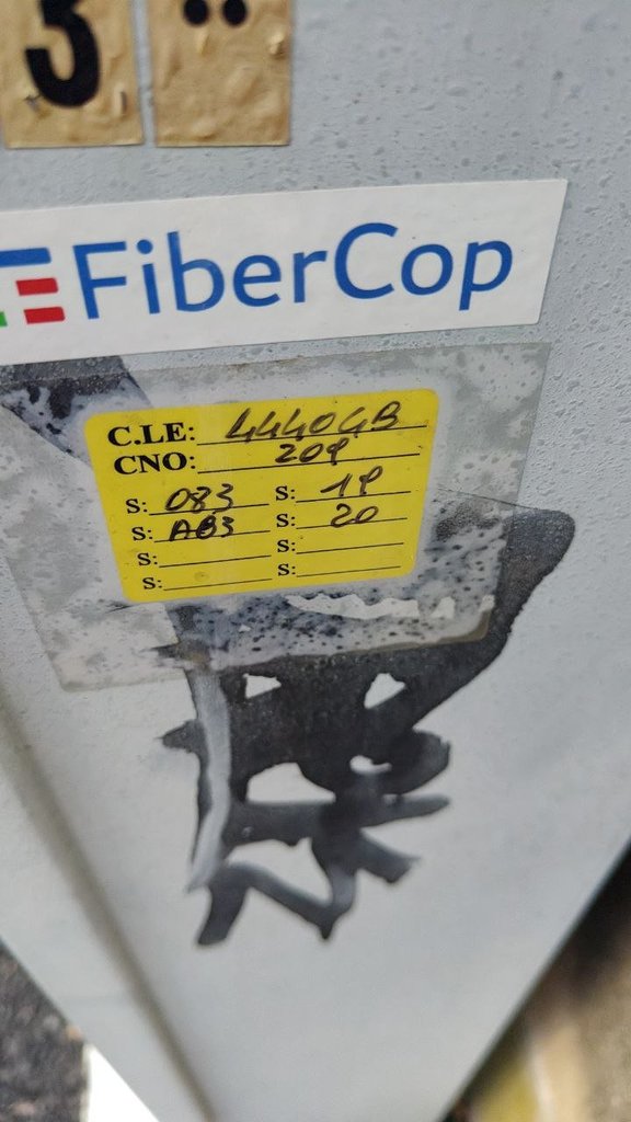 Arriviamo al dunque: a questo punto per curiosità mi metto un attimo a curiosare e basandomi sulle diciture presenti sull'etichetta del mio PTE e in altri in strada risulto connesso ad un CNO 44404B - 209 che sul file csv di fibercop però , risulta essere posizionato al centro di Vicenza (questa zona è molto più periferica) e quindi qualcosa non torna, penso che sia troppo lontano per poter essere collegato a quello.