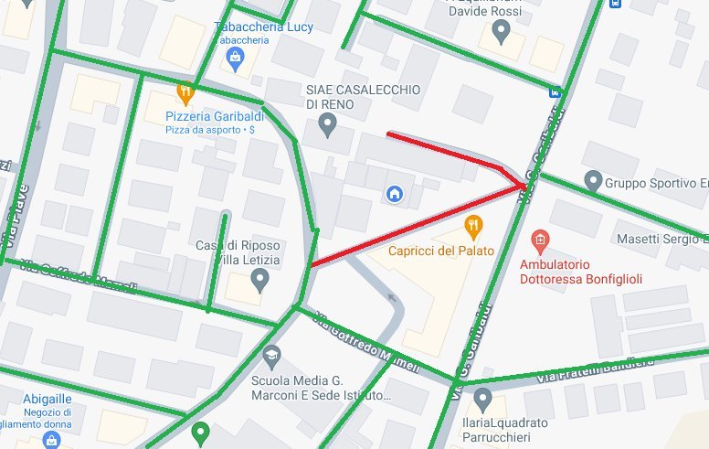 Tuttavia, io abito in un tratto di strada (indicato di rosso nell'immagine) che è stato completamente dimenticato durante la fase dei lavori.