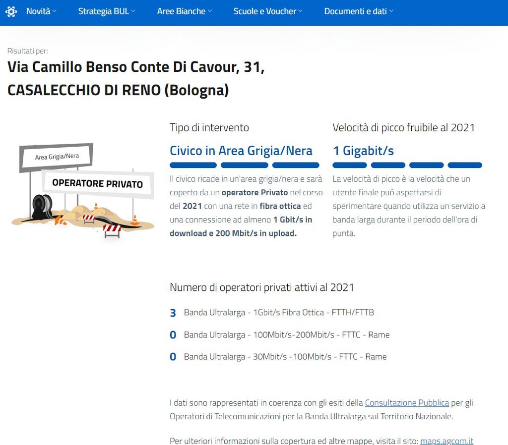 Questo, invece, è l'estratto del sito web banda ultra larga con i dati del mio civico: