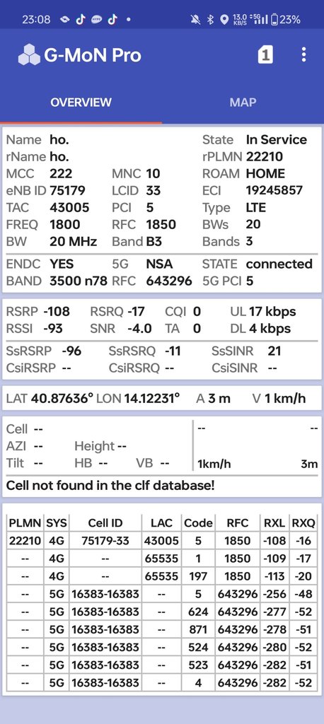 Salve, volevo chiedervi se e come è possibile che io mi sia agganciato, mentre stavo facendo un allenamento in palestra tra l'altro, in 5G sotto ho.mobile, a una antenna che si trova a 2.5km (enodeb 75752) distante in un altro comune 😨