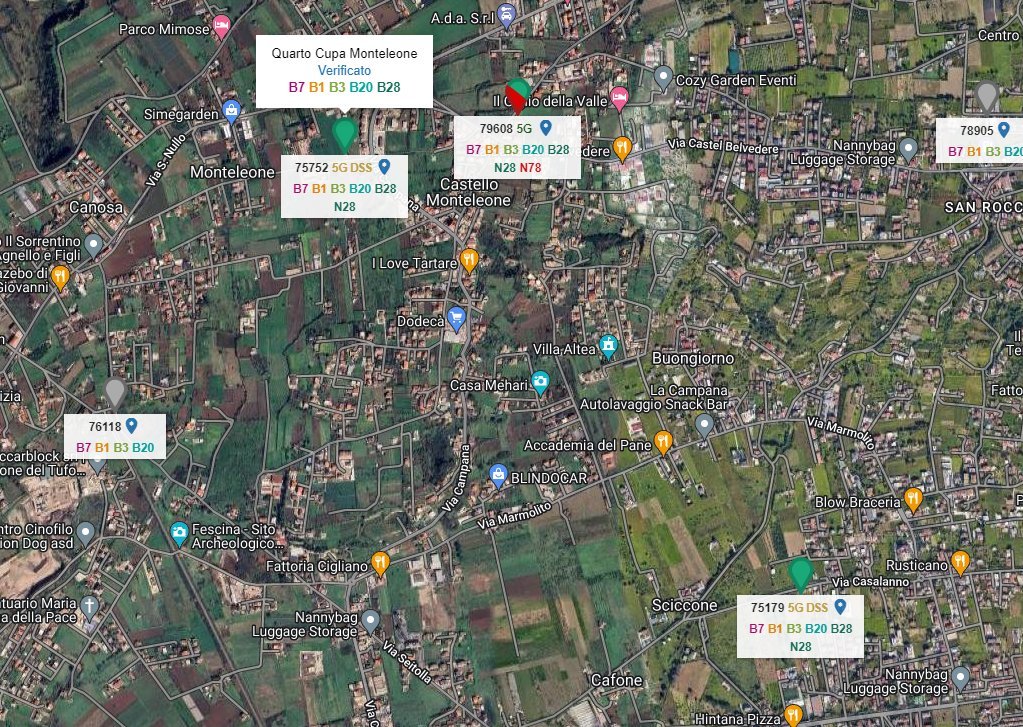 Perché LTEitaly non mi riporta la n78 a questa bts? Possibile che si è agganciata a un'altra antenna? O deve aggiornarsi il database?