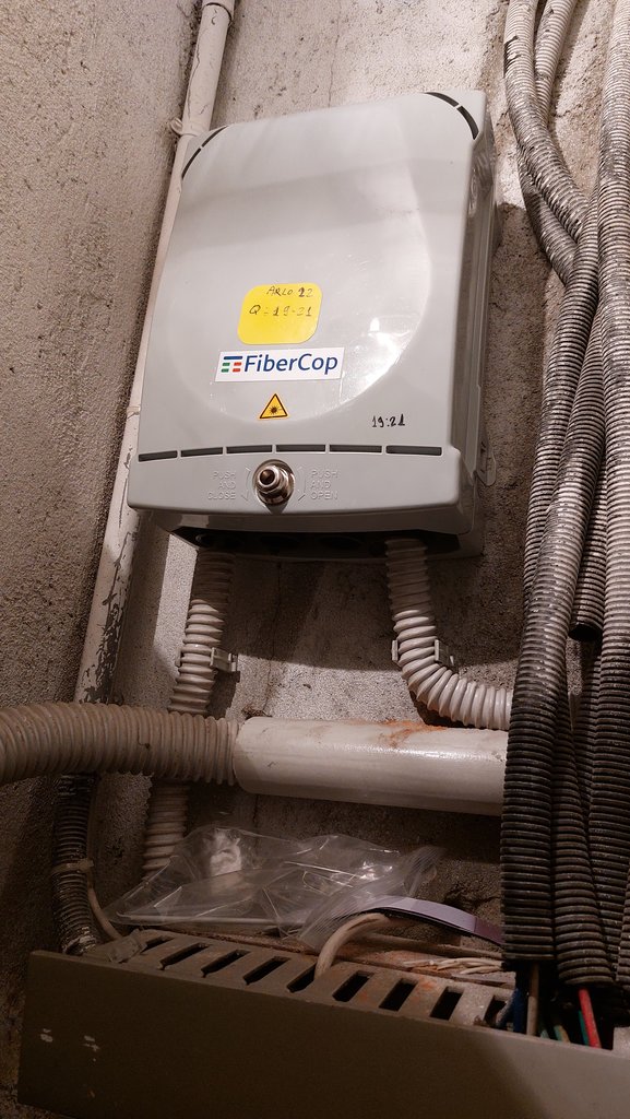 Non avendo molta familiarità con le procedure di attivazione, ho scattato alcune foto nella sala contatori del mio condominio, che presumo siano del PTE di FiberCop e della cabina rame.