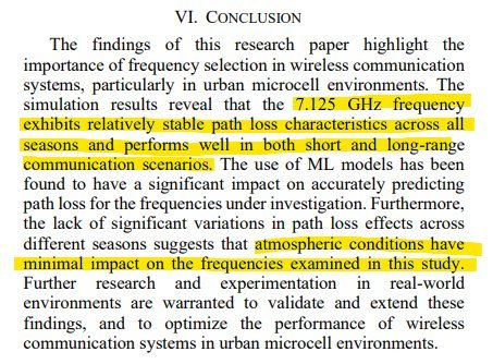 Comparano previsioni basate sul modello di Mie dalle equazioni di Maxwell con dati reali, e mostrano che le equazioni sono molto accurate (almeno per distanza breve). I risultati indicano per il 5G mmWave (no quello NSA italiano) c'è degradazione del segnale rispetto al 4G LTE, ma non indicano nulla sul caso reale, visto che prendono in considerazione 3 parametri, di cui 2 (distanza e dimensione delle particelle) sono irrealistici e non conformi a dati sperimentali reali, dove le distanza possono essere delle centinaia se non migliaia di metri, e le particelle sono dell'ordine del micron, se non milli. Utile questo paper solo per capire che esistono modelli statistici che cercano di prevedere il comportamento "teorico" del CEM in condizioni ambientali di qualsiasi tipo, ma nulla dice su casi reali di analisi, caso mai fossi interessato alla teoria.