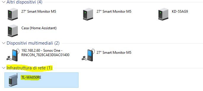 Ciao a tutti, dal mio pc Windows 10, collegato via cavo alla LAN di casa, da Esplora Risorse ho cliccato su "Rete" e Windows facendo la scansione della rete trova questo dispositivo tp-link: