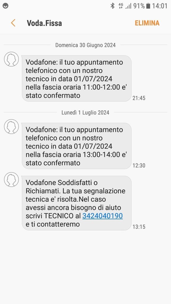 Dopo tutta questa merda, ad aggiungere il sale sulla ferita è stato un SMS dalla vodafone (allegato) dove mi hanno segnalato il problema come risolto.