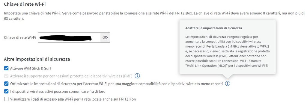 Ciao a tutti, stamattina ho installato l'ultima beta disponibile per il mio FritzBox 7590. la 7.90-114237. Ho notato che nella sezione sicurezza del WiFi c'è una nuova opzione (che io ricordi non l'ho mai vista, mea culpa se cosi fosse), che allego.