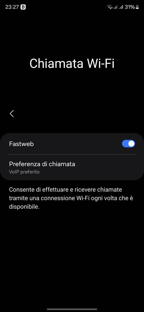 MaurusB Ricevuto ora aggiornamento parametri operatore su S24 Ultra, è comparsa l'opzione Chiamata wi-fi. Da notare che ho due e-sim sul telefono, Fastweb e Vodafone, è l'opzione è disponibile solo per FW.