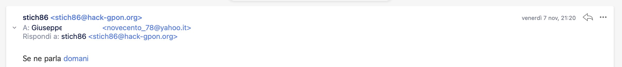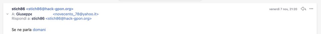 Rekko Novecento1978 TI giuro su dio che non ho nessuna risposta neanche sugli spam??? Perché non mi arrivano le tue risposte? Certo che usare ancora come provider mail yahoo... Sicuramente è lui, oppure il tuo client di posta