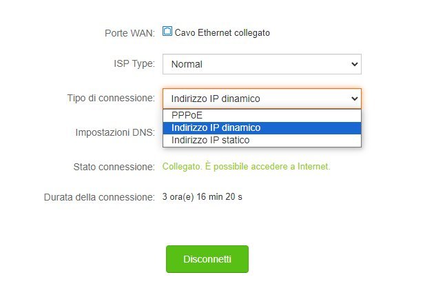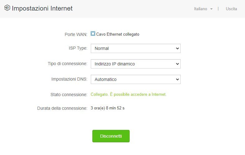 Ogni giorno però, di solito verso le 22, il router Tenda perde la connessione ad internet e per ripristinarla devo accedere al pannello di controllo e riconnettere manualmente cliccando sul tasto "Collegare"