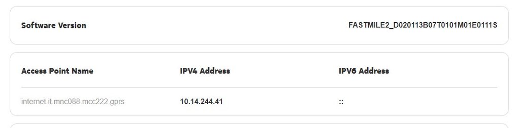 sto usando una SIM Alpsim (Wind3) installata in un'antenna 4G Nokia Fastmile 4G05A in accoppiata con un router Wi-Fi Tenda AC1200 MU-MIMO Dual Band Gigabit WiFi Router · AC10 / AC10U in modo da trasformare la connessione cablata dell'antenna in una wireless.