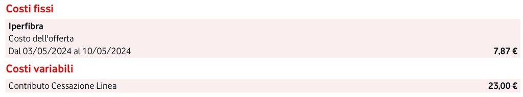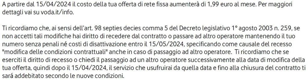 dopo l'ennesima comunicazione di rimodulazione da parte di Vodafone ho deciso di cambiare operatore per la linea fissa di casa (FTTH). Nella bolletta di gennaio-febbraio Vodafone mi comunicava questo: