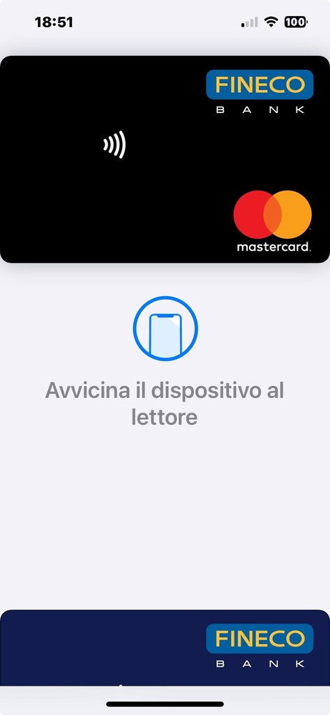 se hai carte di debito di diversi circuiti le aggiungi e da questa schermata, in foto, che si apre con il doppio clic laterale, basta toccare la carta desiderata che la cambia all'istante e paghi con quella, appare in primo piano la predefinita e più sotto le altre o l'altra