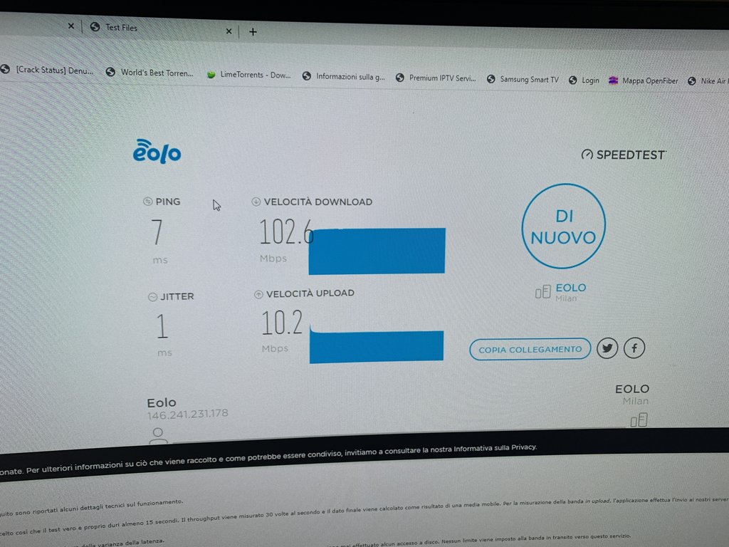 La linea è praticamente perfetta,ora devo testarla con condizioni meteo sfavorevoli oppure vedere se nel caso ci saranno vari blocchi(p2p,giga limitati,ecc)