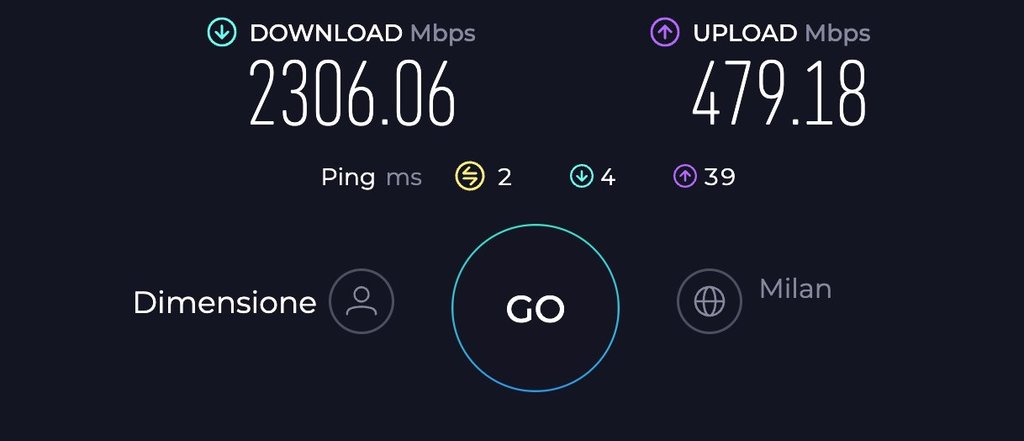 matbard chigos85 ciao, nessun disturbo, figurati! Con il cavo diretto e adattatore USB-Ethernet 2.5 riesco a fare circa 1.980 M in D/L e 1000 in U/L, e mi ritengo soddisfatto perché ho anche il NAS con porta 2.5 che "ciuccia" un po di banda costantemente. Sotto Wifi le variabili sono troppe, ma per esempio il mio iPhone 14 Pro Max riesce a fare 650/450 senza problemi.
