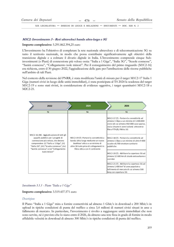 Link documento: Revisione del PNRR - modifica unità di misura per il target M1C2-17 (Piano Italia 1Giga) - da Pagina: 478