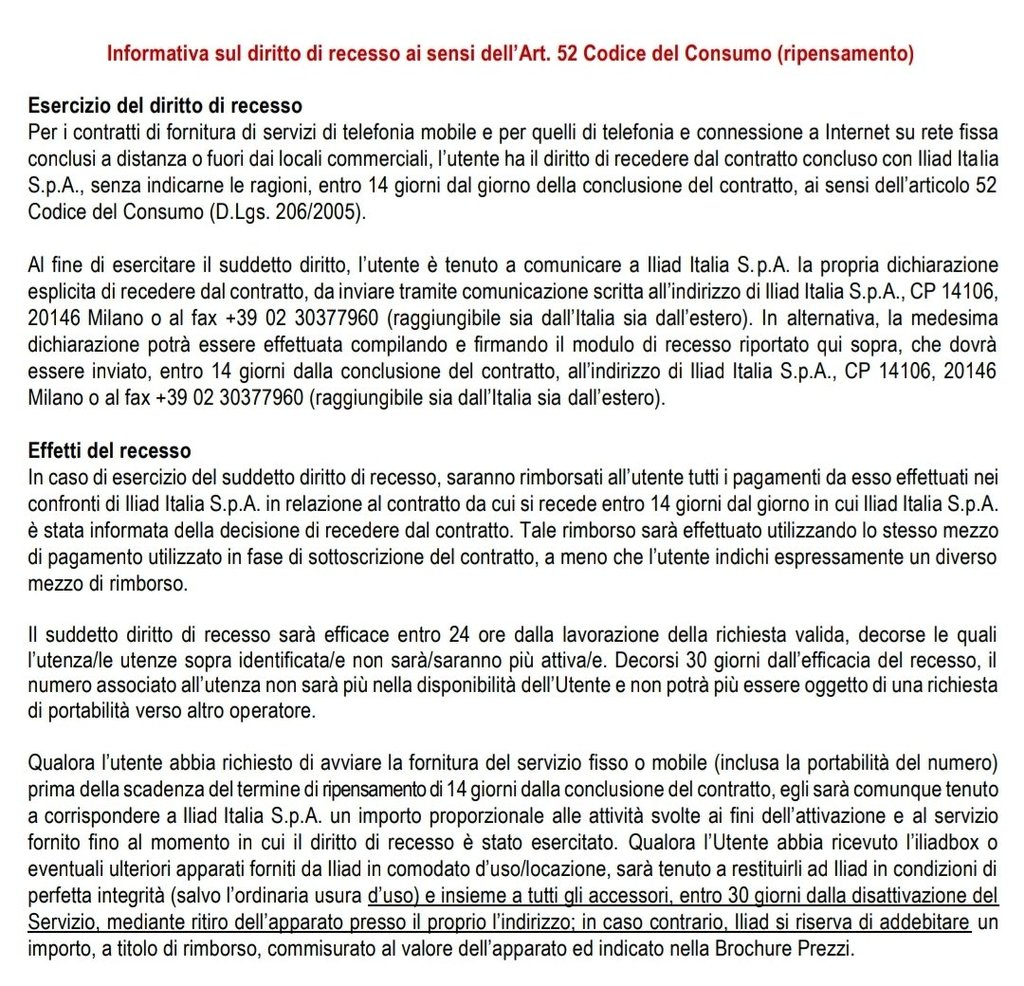 Il 28/05 esercito diritto di ripensamento per una eSIM iliad (avevo attivato una SIM con numero personalizzato ma poi ho interrotto il processo. In seguito ricevo la mail per riprendere la procedura, ad attivazione ultimata invece di darmi il numero che avevo richiesto me ne danno uno random, motivo per il quale l'ho cessato senza nemmeno scaricarlo sul telefono)