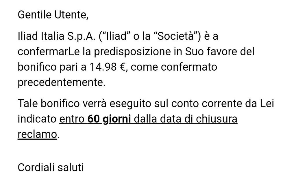 Nei giorni successivi contatto due volte il 177, spiego la problematica ma la chiamata si muta dopo che mi mettono in attesa (problemi con VoLTE o azione voluta? Ipotizzo perchè mi era successo con altre chiamate), per cui scrivo al 177 sui social il quale mi dice che hanno predisposto il bonifico a seguito della mia PEC (alla quale non avevano risposto e senza fornirmi dettagli).