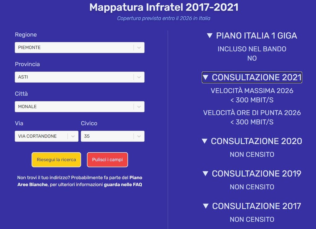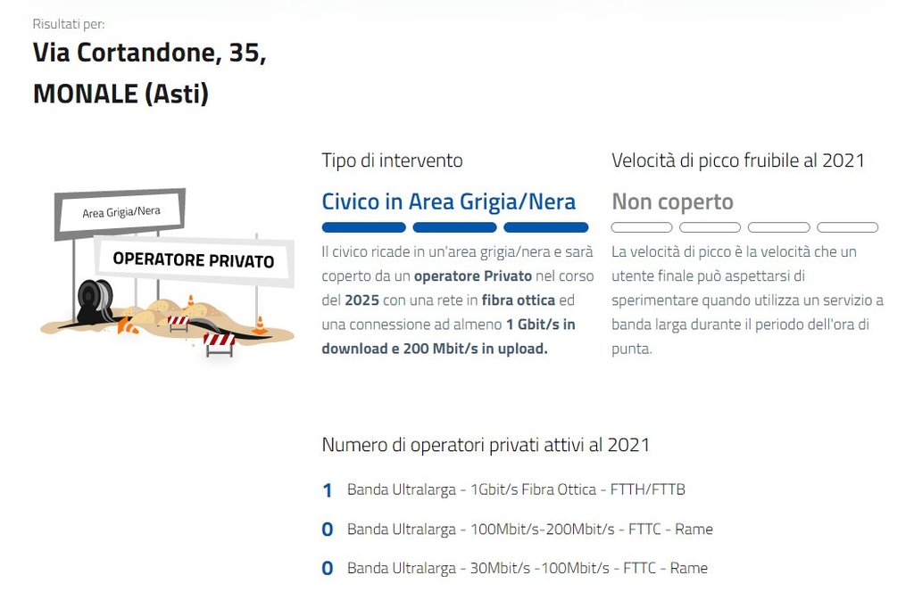 dal sito ad esempio per l'indirizzo Via Cortandone 35 https://bandaultralarga.italia.it/indirizzo/?address=region-1_city-5067_street-380100182720954 vedo questo :